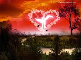 kecil dengan dua sayap terbang mengitari gambar hati sambil mengarahkan
